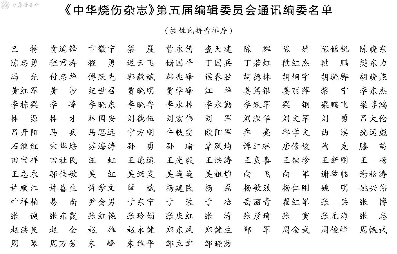 《中华烧伤杂志》第五届编辑委员会通讯编委名单