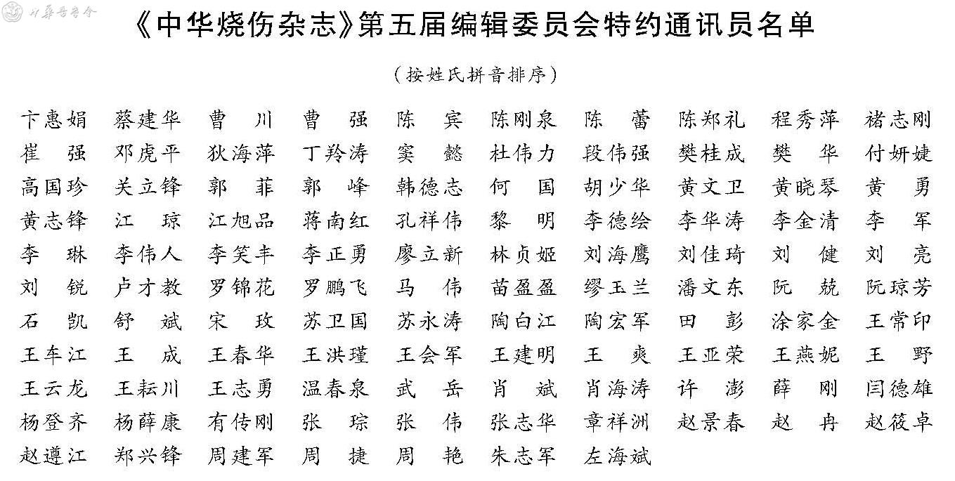 《中华烧伤杂志》第五届编辑委员会特约通讯员名单