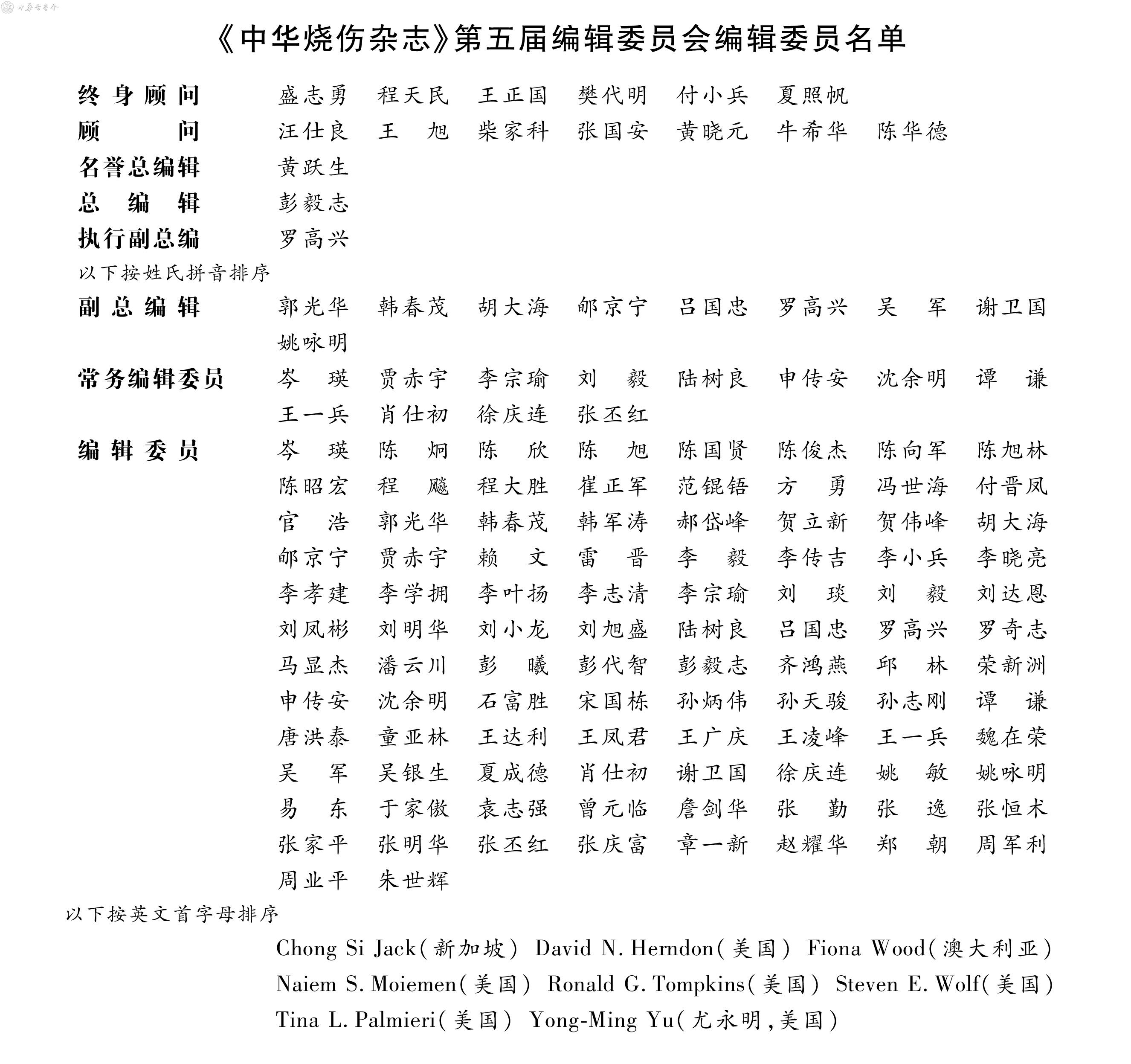 《中华烧伤杂志》第五届编辑委员会编辑委员名单
