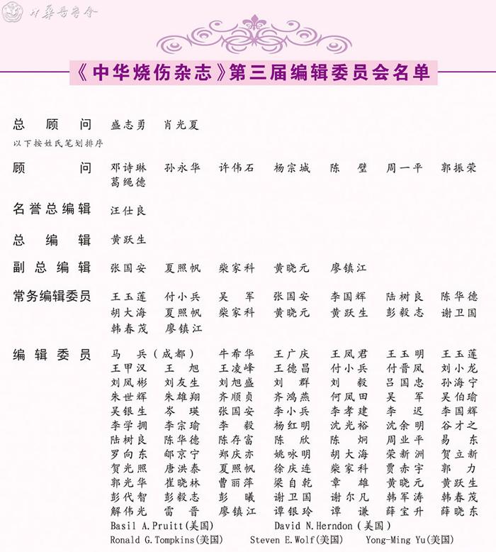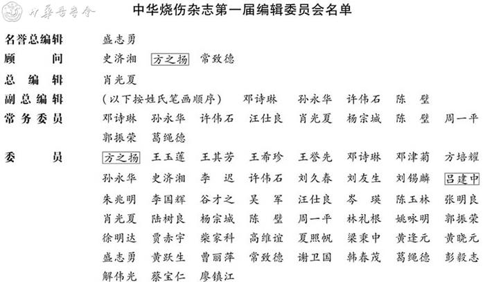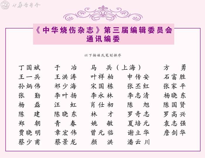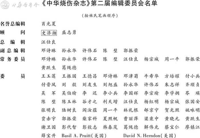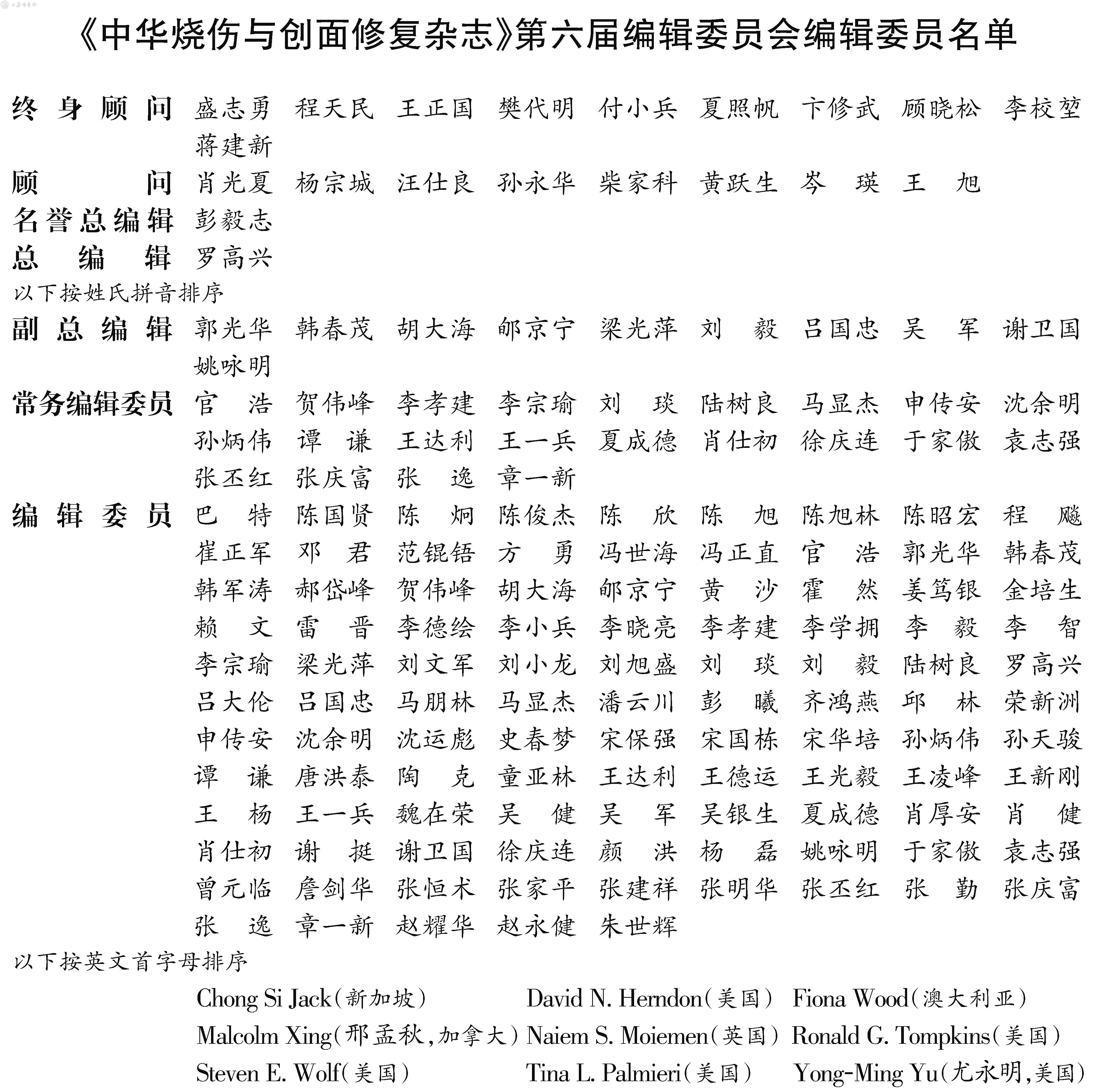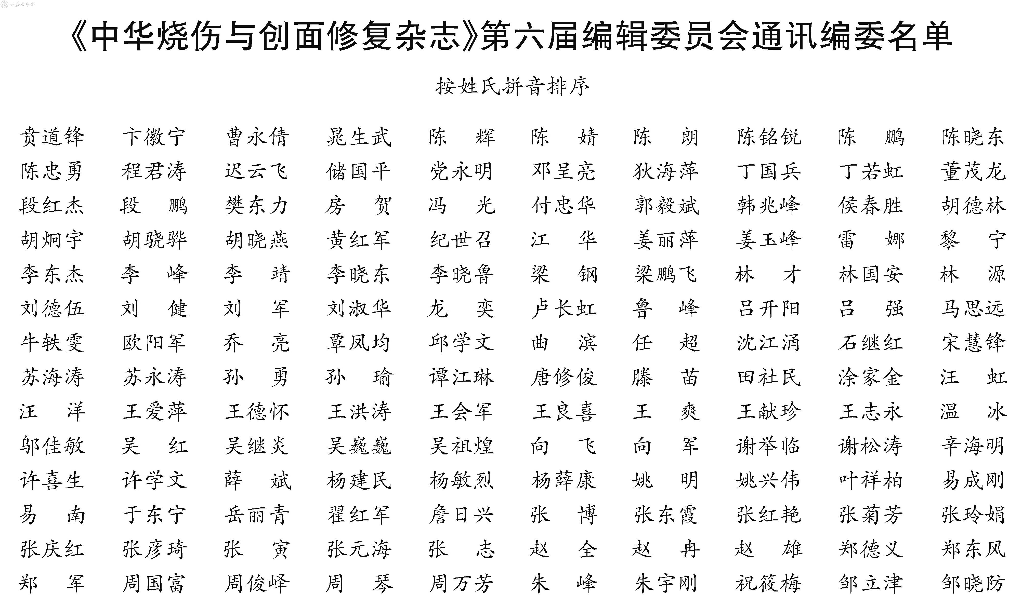 《中华烧伤杂志》第六届编辑委员会编辑委员名单
