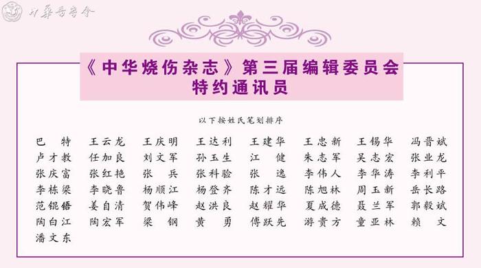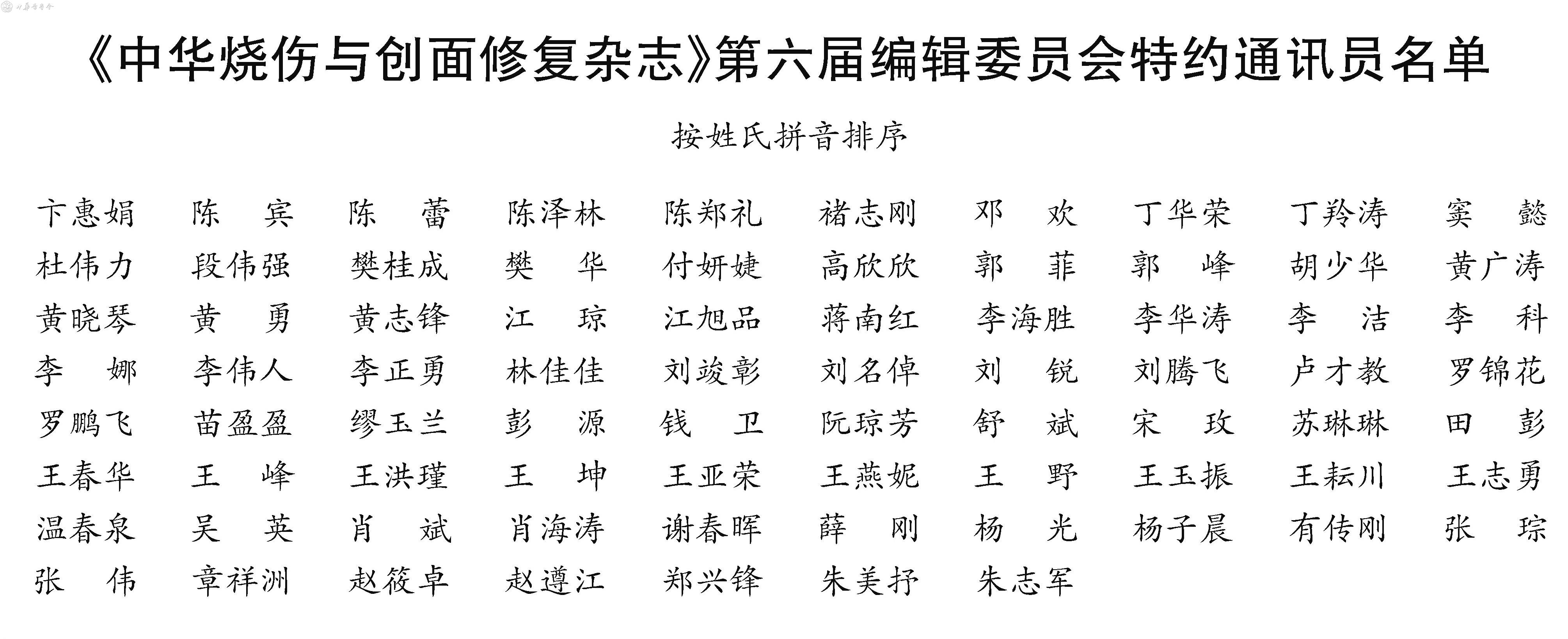 《中华烧伤杂志》第六届编辑委员会通讯编委名单