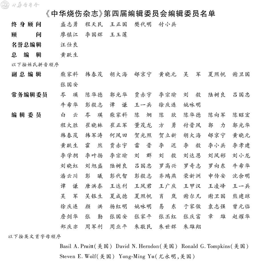 《中华烧伤杂志》第四届编辑委员会编辑委员名单