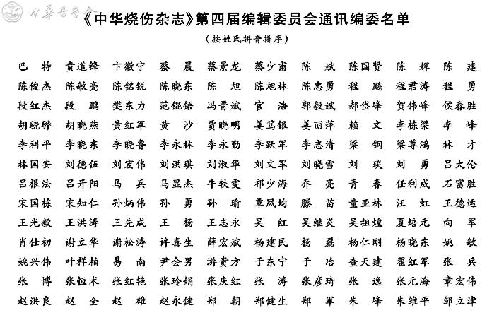 《中华烧伤杂志》第四届编辑委员会通讯编委名单