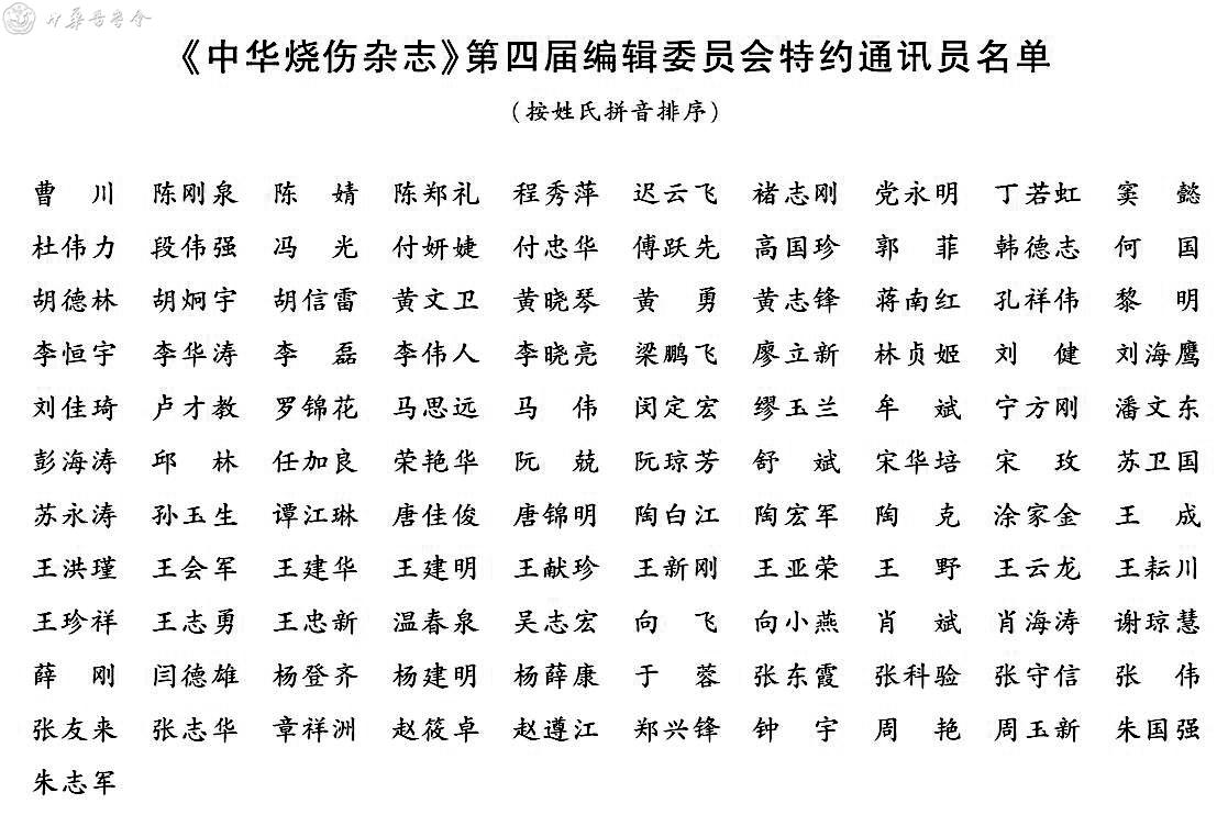 《中华烧伤杂志》第四届编辑委员会特约通讯员名单