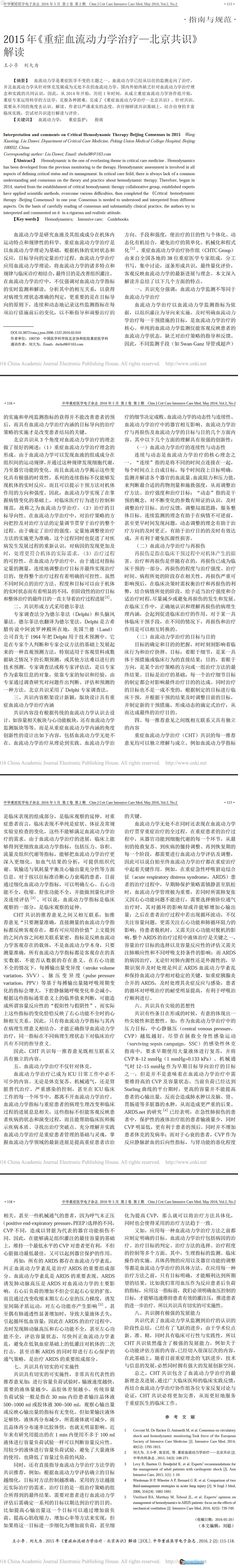 2015年《重症血流动力学治疗—北京共识》解读